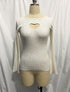 A slim-fit sweater featuring a heart-shaped cut-out and flared sleeves, perfect for a playful yet chic look.
