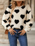 Fuzzy top with heart prints. Oversized fit for a comfortable and casual look. Perfect for cozy days.