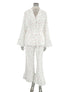 Pajama set with a heart print design. Long sleeves and pants for a cozy night in.