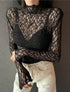 A high-neck lace long sleeve top with a fitted design. Perfect for layering or wearing alone for a sophisticated style.