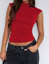 Sleeveless high-neck vest in a simple solid color. Tight-fitting design for a sleek look. Great for layering or wearing solo.