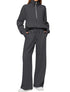 A comfortable lounge set with a high neck and zip-up top. Includes wide-leg pants with a drawstring waist for a cozy fit.