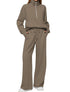 A comfortable lounge set with a high neck and zip-up top. Includes wide-leg pants with a drawstring waist for a cozy fit.