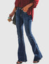 High-waisted flare jeans featuring a fitted silhouette through the hips and thighs, finished with a wide flare hem.
