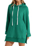 Hooded top with a longline fit. Features side slits, a front pocket, and drawstring hood, ideal for casual layering.