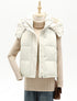Quilted puffer vest with a cozy hood. Snap buttons for secure closure. Perfect for chilly days.