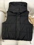 Quilted puffer vest with a cozy hood. Snap buttons for secure closure. Perfect for chilly days.