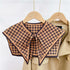 A scarf collar featuring a houndstooth pattern and tie-front design.