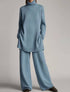 Knitted Solid Color High-Neck Relaxed Two-Piece Set