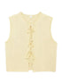 A sleeveless vest with knotted front closures, featuring a textured design and a boxy fit.