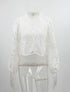 Lace Cut Out Zip-Up Long Sleeve Blouse