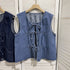 Set of two lace-up denim vests. A classic style with an edgy twist, these vests offer adjustable front ties and are great for layering.
