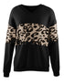 A V-neck sweater with a bold leopard print accent. Features a relaxed fit and ribbed cuffs. Adds a touch of flair to casual outfits.