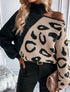 High-neck pullover with leopard print patchwork. Stylish and warm for casual outfits.