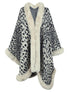 A cape featuring a bold leopard print with faux fur trim and a relaxed fit.