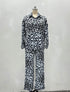 Loose-fit lounge set with a leopard print. Features a button-up top and wide-leg pants. Stylish and comfortable for lounging or errands.