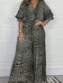 A loose-fitting jumpsuit with a bold print. Features wide legs and a tie-waist detail. Easy and stylish for a casual look.