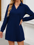 A long-sleeve mini dress with a polo collar and a relaxed fit, offering a casual yet stylish look.