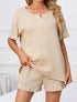 Relaxed two-piece set with a V-neck design. Comfortable and stylish for everyday wear.