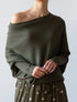 Oversized pullover with an off-shoulder design. Cozy and relaxed for lounging or casual outings.