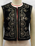 Open-front vest set with intricate details. Features sleeveless design and cropped fit. Adds a vintage-inspired touch to any outfit.