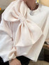 A pullover with an oversized bow accent on one shoulder, long sleeves, and a crew neckline.