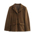 An oversized faux suede blazer with a single-button closure and a structured fit for a casual-chic look.