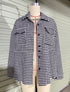 Oversized houndstooth print shacket with a relaxed fit. Features button-up closure and side pockets. Ideal for layering over casual outfits.