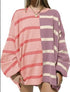 This oversized sweater features bold horizontal stripes, providing a fashionable and comfortable fit for any casual occasion.