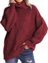 An oversized knit sweater with a turtleneck and cable detailing, perfect for a relaxed and warm winter look.