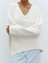 Oversized V-neck sweater with ribbed cuffs and hem. Cozy and loose-fitting. Perfect for a laid-back style.