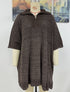 An oversized zip-up poncho sweater featuring short sleeves and a loose, relaxed fit. Perfect for layering.