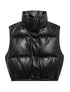 A cropped puffer vest with padded design and a zip-up front. Features a high collar and relaxed fit.