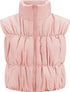Cropped padded vest with a zip-up closure. Features a stand-up collar for added warmth. A trendy layering piece for casual looks.