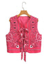 A vest featuring a paisley print, front tie detail, and sleeveless cut.