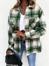 Button-up shacket with an allover plaid pattern, basic collar, button-front closures, buttoned chest flap pockets, dropped long sleeves with buttoned cuffs.