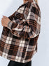 Button-up shacket with an allover plaid pattern, basic collar, button-front closures, buttoned chest flap pockets, dropped long sleeves with buttoned cuffs.