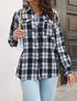 Loose-fit plaid shirt with button-up front. Longline design offers flexibility in styling. A wardrobe staple for any season.