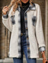 Overshirt with sherpa texture and plaid trim. Button-front closure with a relaxed silhouette. A stylish layering piece.