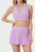 Stylish two-piece set with a sleek crop top and pleated skirt. The collared neckline adds a sporty and chic touch. Perfect for active or casual daywear.