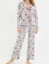 Long-sleeve button-down pajama top with printed design. Matching pants for a complete sleepwear set. Relaxed fit for comfort.