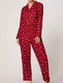 Pajama set with a playful print. Long sleeves and a comfortable fit for lounging. Perfect for cozy nights.
