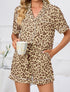 Printed pajama set with a relaxed fit. Includes a short sleeve top and matching shorts. A comfy choice for lounging.
