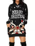 Christmas hoodie dress with reindeer graphics. Features front pockets for added warmth. Perfect for festive occasions.