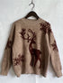 Festive holiday pullover featuring a reindeer graphic. Comfortable fit for seasonal celebrations. Ideal for pairing with jeans.
