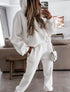 Hooded loungewear set with a relaxed fit. Soft material with elastic waistband for easy wear. Great for staying comfortable at home.