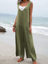 A loose-fitting sleeveless jumpsuit with a wide-leg design, perfect for beach or casual outings.