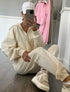 Hoodie and jogger set with a relaxed fit. Perfect for lounging or a casual day out.