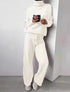 Two-piece loungewear set featuring a relaxed fit. Includes a pullover top and matching wide-leg pants. Comfortable and versatile for casual days.