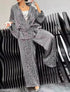 A stylish lounge set with a button-up top. Loose-fitting pants with a drawstring waist. Eye-catching leopard pattern.